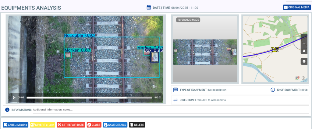 In the railway sector, there is an increasing need to automate line inspection and the monitoring of installed components, reducing manual field activities while making the process more traceable and repeatable.