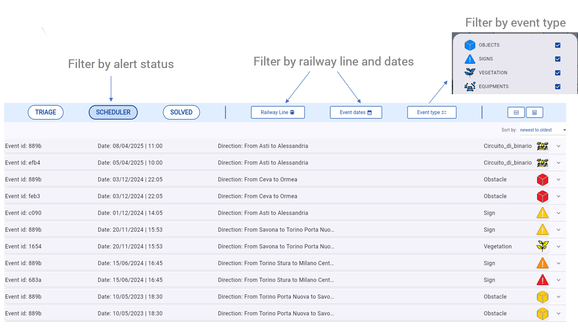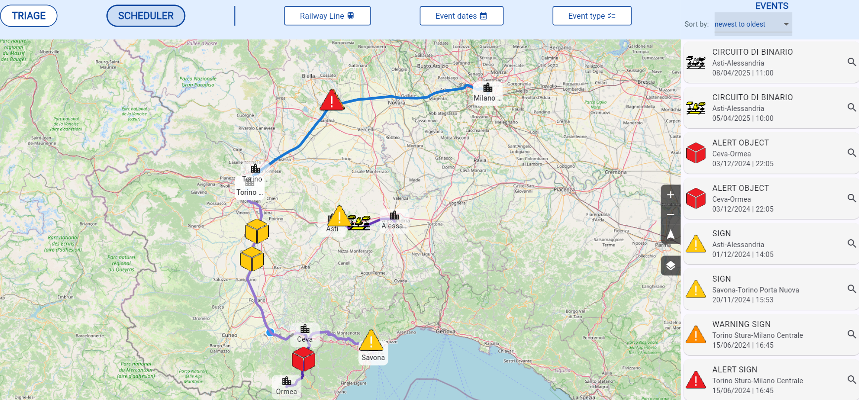 The platform enables automated or semi-automated verification of railway line conditions, supporting the analysis of infrastructure status and the management of timely notifications.