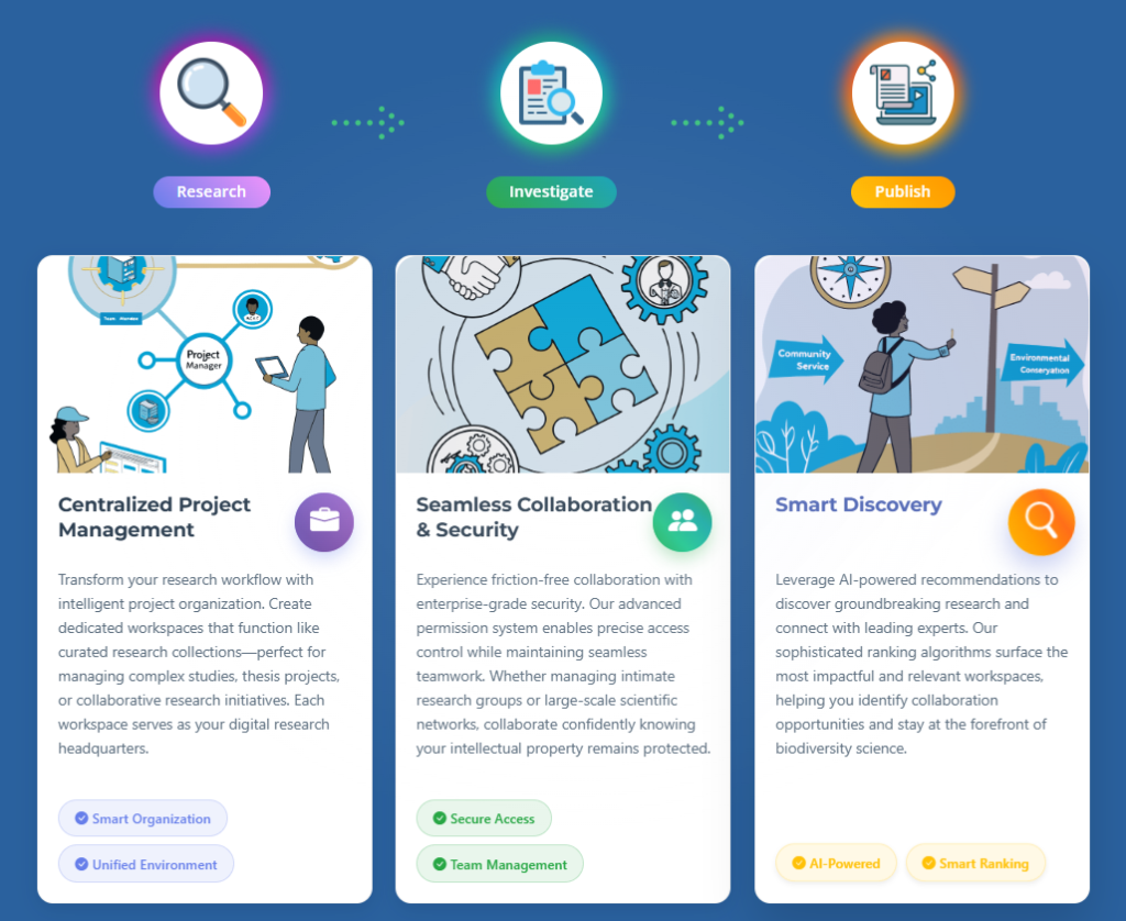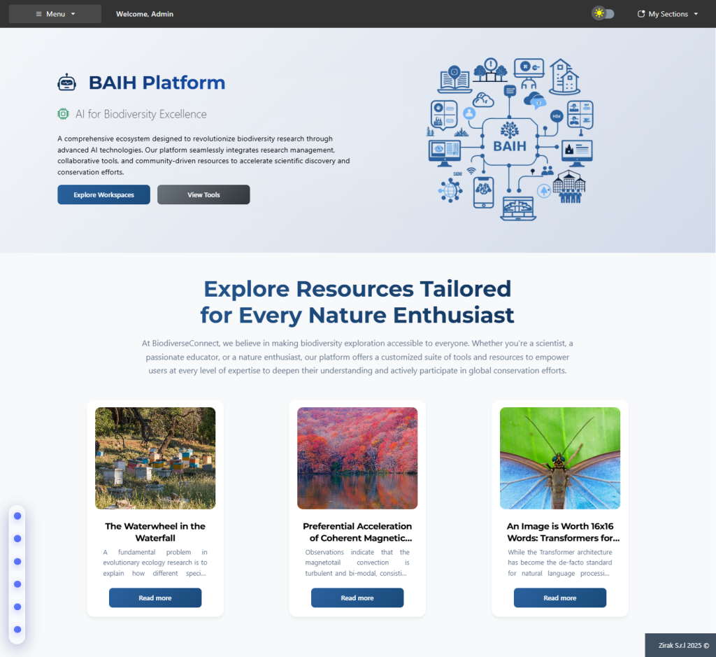 The BAIH Platform is a digital ecosystem designed to empower the biology and remote sensing research communities. It serves as a centralized hub for sharing, discovering, and organizing scientific resources — from academic papers and datasets to code repositories, models, and tools.
